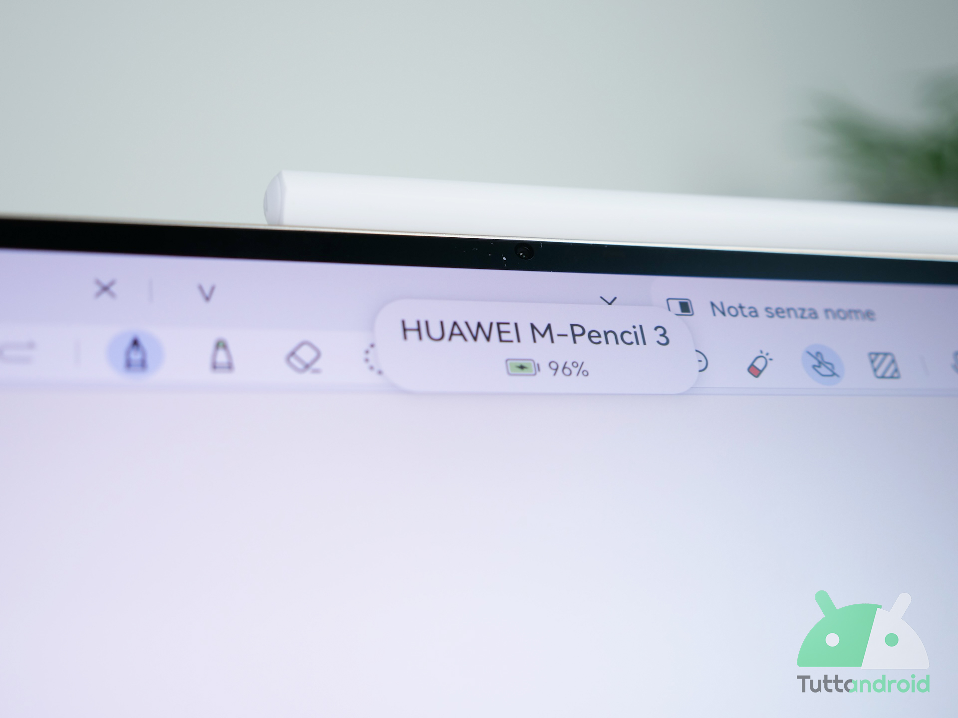 Huawei infatti MatePad Pro 12.2 della M-Pencil, uno stilo che offre oltre 16.000 livelli di sensibilità alla pressione. Questo permette un controllo di livello durante il disegno o la scrittura. La latenza è praticamente inesistente, il che significa che la risposta del tratto sullo schermo è immediata e precisa. Anche la capacità di percepire la variazione di pressione e angolazione della penna rende l’esperienza ancora più simile a quella del disegno su carta.