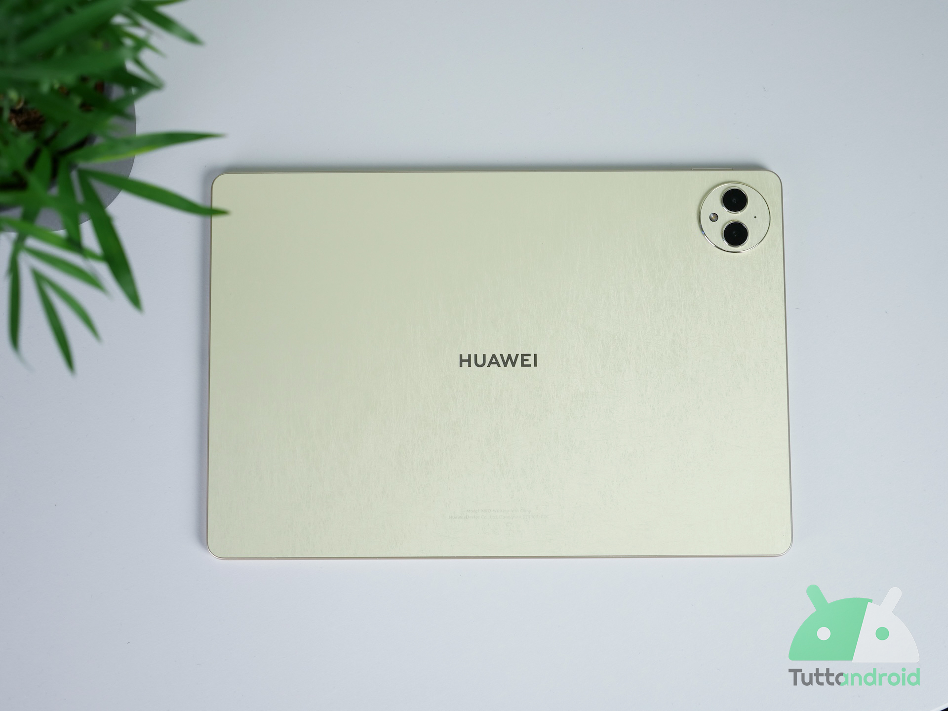 Il retro è caratterizzato da una finitura “Golden Silk”, che conferisce un look elegante, anche se potrebbe non piacere a tutti per via della sua sobrietà. Nonostante la scelta di materiali di qualità, il MatePad Pro rimane un dispositivo estremamente pratico da utilizzare in diversi contesti, che si tratti di lavoro, disegno o svago. La struttura sottile e leggera, unita alla solida costruzione, lo rende un dispositivo versatile e comodo da portare con sé ovunque.
