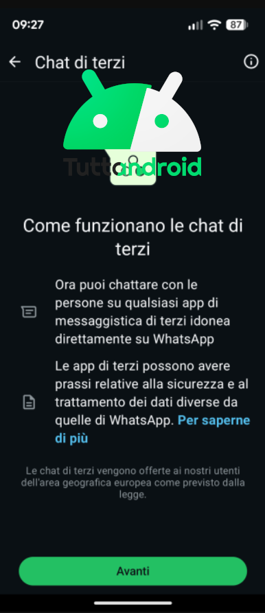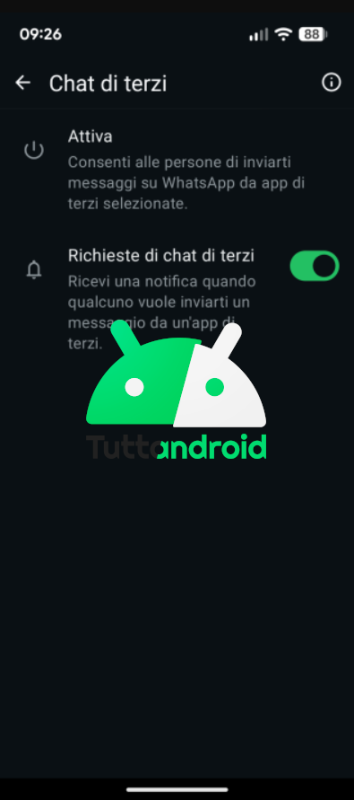 Se la funzionalità è disponibile, gli utenti possono attivarla andando su Impostazioni, entrando nella sezione Account e quindi scegliendo Chat di terze parti.