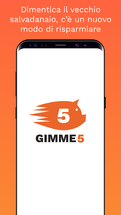 Gimme5 è un’applicazione che offre all’utente un salvadanaio virtuale in cui mettere i risparmi per raggiungere degli obbiettivi.