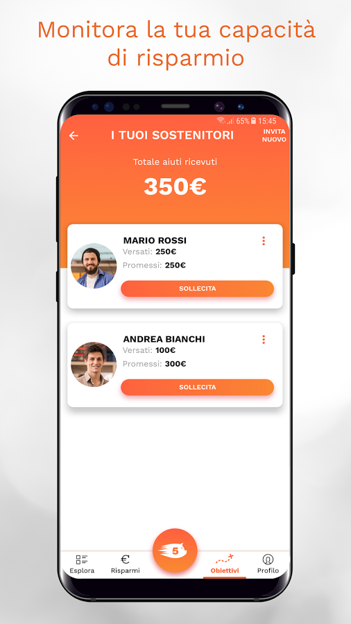 Tramite la funzione “sostenitore” è possibile contribuire al raggiungimento degli obbiettivi di amici e parenti oppure invitarli a contribuire ai propri.