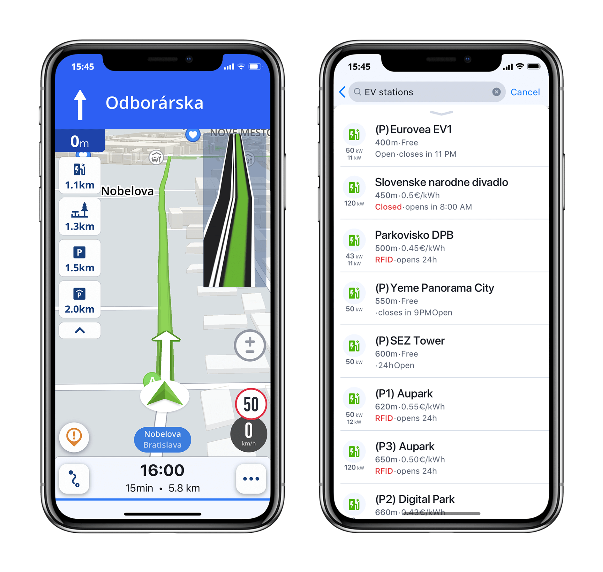 All’interno di Sygic GPS Navigation è possibile selezionare o aggiungere il proprio modello di auto elettrica, “cucendo” su misura tutte le specifiche necessarie (capacità batteria, consumi e così via). Durante la pianificazione di un viaggio inoltre, si possono aggiungere le stazioni di ricarica con posti liberi disponibili e connettori compatibili lungo il tragitto, in modo da non avere sorprese.