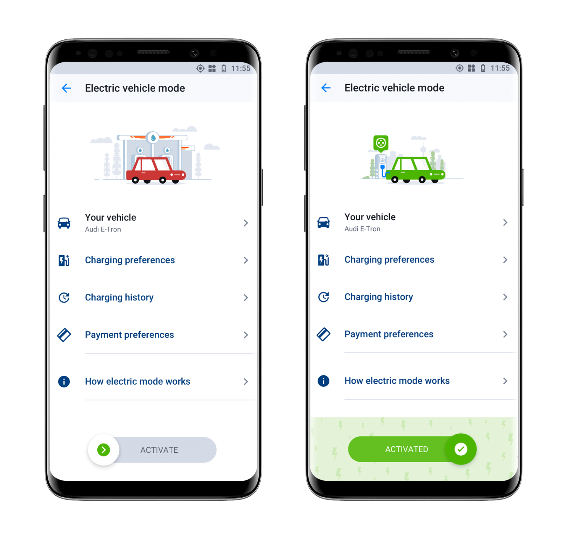 Il nostro obiettivo era quello di offrire un’esperienza di ricarica comoda e priva di seccature a qualsiasi tipo di conducente di auto elettrica. È sufficiente attivare l’EV Mode e ci occuperemo noi di programmare tutto. Gli autisti aggiungono la stazione di ricarica come waypoint della navigazione, controllano se c’è una postazione libera, selezionano il metodo di pagamento e ricaricano. Mentre stanno bevendo un caffè in un bar nelle vicinanze, ricevono una notifica push che li avvisa che la ricarica della batteria ha raggiunto un certo livello e possono pagare il servizio immediatamente.