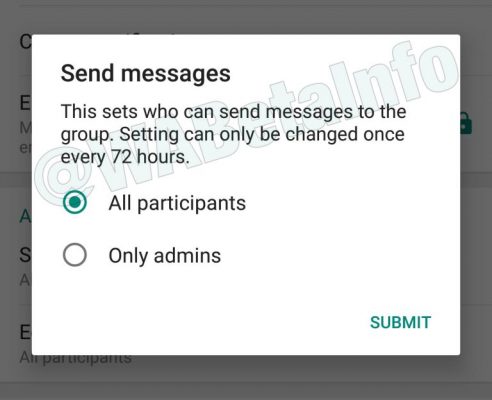 Presto arriverà nei gruppi la sezione dedicata agli amministratori, con la possibilità di disabilitare tutte le funzioni di chat, opzione che può essere modificata al momento ogni 72 ore, e la possibilità di decidere chi può cambiare le informazioni relative al gruppo.