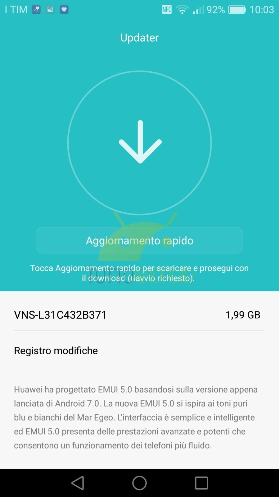 L’aggiornamento, siglato VNS-L31C432B371, è in roll out da qualche ora tramite OTA e richiede il download di un pacchetto dal peso importante, poiché parliamo di ben 1,99 GB, pertanto è consigliabile scaricarlo tramite una connessione Wi-Fi stabile e veloce.