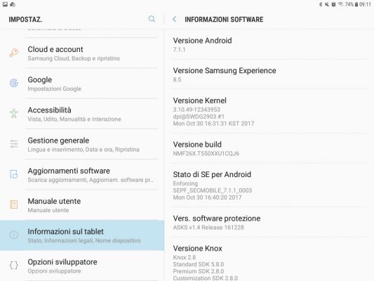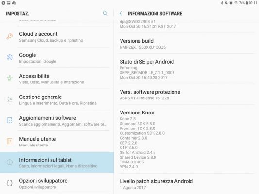 L’aggiornamento per Galaxy Tab A 9.7 (2015) è quindi in fase di rilascio in Italia, per cui vi basterà attendere l’arrivo della notifica per scaricare l’OTA. Se invece l’update dovesse tardare ad arrivare, potreste anche riuscire a forzarne il download, andando in Impostazioni > Info sul dispositivo > Aggiornamenti software.
