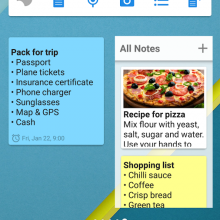 Sono inoltre presenti un widget che consente di “attaccare” le note sulle schermate del dispositivo come fossero dei post-it e la possibilità di condividerle tramite varie applicazioni.