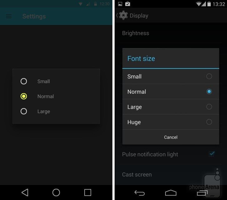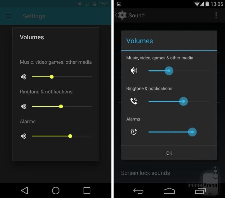 Nonostante sia ancora solo una Developer Preview, è possibile già apprezzare numerose differenze rispetto a KitKat, non solo grafiche. Perciò abbiamo voluto riportarvi alcune immagini di confronto di diverse parti del sistema realizzate da PhoneArena e un video confronto realizzato invece da PocketNow. Non vogliamo dilungarci oltre e per questo motivo vi rimandiamo ai contenuti qui sotto, che parleranno a posto nostro.