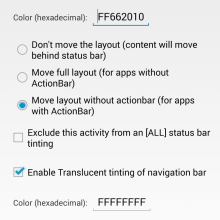 Tinted Translucent StatusBar è un nuovo modulo Xposed per ora in fase Beta che permette agli utenti che hanno installato ed attivo Xposed Framework di modificare il colore e la trasparenza della barra di stato e di quella di navigazione in qualsiasi applicazione.