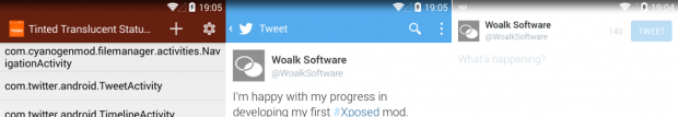 Grazie a questo modulo Xposed, come si vede anche dalle immagini nell’articolo, si potrà quindi sia aggiungere la trasparenza di KitKat in ogni applicazione sui dispositivi aventi tasti software, sia colorare la barra di stato dello stesso colore della barra superiore delle app. Nonostante il modulo sia ancora in fase Beta, i risultati che si ottengono sono davvero molto buoni e l’effetto risulta proprio ben riuscito.