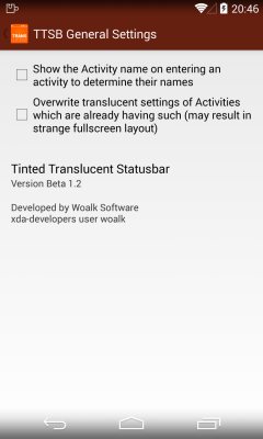 Tinted Translucent StatusBar è un nuovo modulo Xposed per ora in fase Beta che permette agli utenti che hanno installato ed attivo Xposed Framework di modificare il colore e la trasparenza della barra di stato e di quella di navigazione in qualsiasi applicazione.