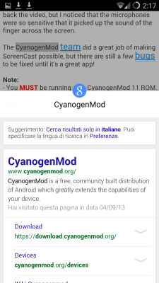 Grazie alla segnalazione di un nostro lettore, veniamo a conoscenza che adesso Chrome Beta visualizza una scheda per la ricerca. In pratica, evidenziando del testo in una pagina Web si aprirà automaticamente una scheda in basso, la quale potrà essere trascinata verso l’alto in modo da visualizzare immediatamente i risultati di ricerca relativi al testo che abbiamo evidenziato in precedenza.