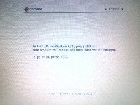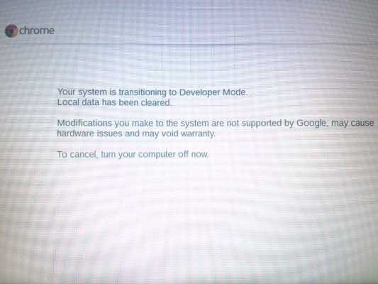 - complimenti, il vostro Chromebook è ora in Developer Mode!