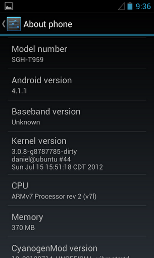 Ancora un Galaxy, ancora americano, riceve un primo assaggio dei Jelly Bean grazie alla CyanogenMod 10. Stiamo parlando della versione T-Mobile del Galaxy S. Naturalmente il lavoro da fare è ancora parecchio ma almeno pare essere iniziato nel migliore dei modi. Ecco un’immagine che testimonia la presenza della CM 10 sul dispositivo.