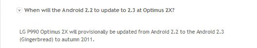 Secondo un messaggio rilasciato da LG svedese, il fatidico aggiornamento ad Android 2.3 Gingerbread per LG Optimus Dual che doveva arrivare nel mese di Giugno sarà posticipato ad autunno 2011. Al momento nessun altro paese ha rilasciato comunicazioni in merito, tanto meno LG Italia che, tuttavia, potrebbe darci una risposta nel breve periodo come ha sempre fatto per questioni simili.
