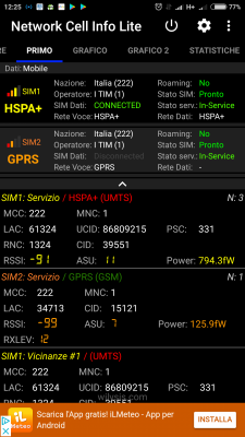Network Cell Info Lite è un’applicazione per il monitoraggio della rete cellulare e misurazioni di log per connessioni LTE, HSPA, WCDMA, EDGE, GSM, CDMA, EVDO.