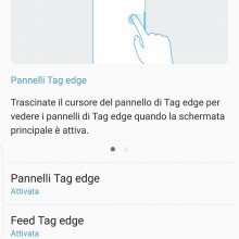 Un’altra funzionalità è chiamata Feed Tag Edge e permette di visualizzare alcune informazioni su una delle aree curve. Il display dovrà essere spento e con un doppio swipe attiveremo la modalità Edge. Potremo scegliere tra alcuni pannelli preinstallati e scaricarne di nuovi, anche in questo caso non abbiamo trovato veramente spendibile la feature nella vita quotidiana. In alcune situazioni potrebbe tornare utile la visualizzazione delle notifiche, ma la presenza del display always on rende meno significativo l’utilizzo di tag edge.