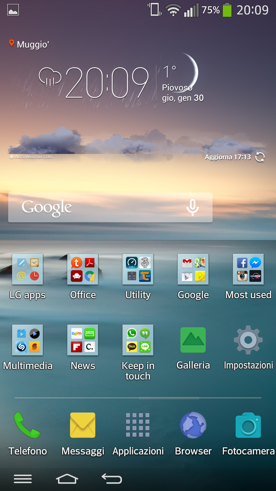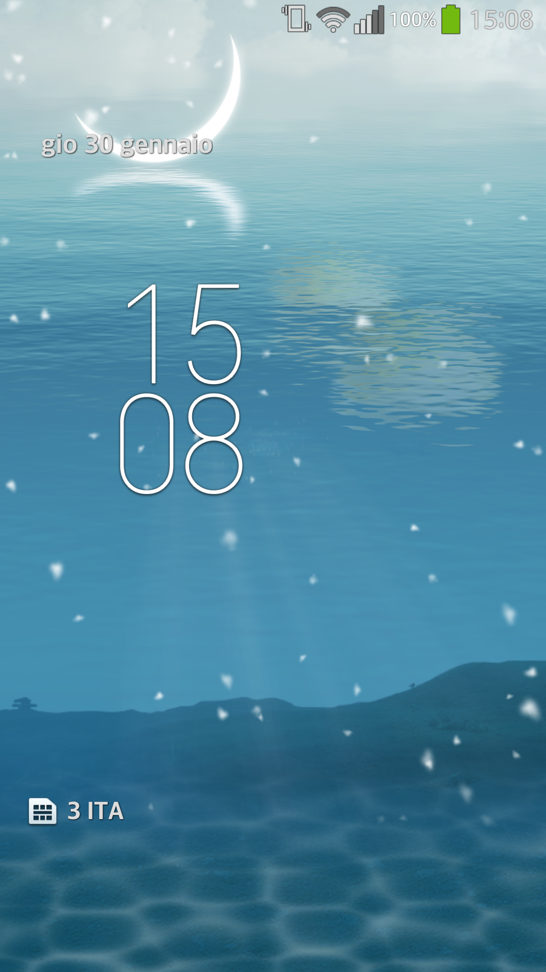 - La lockscreen di default è quella del G Flex: davanti a noi troviamo un mare in movimento con i riflessi della luna, sia di giorno che di notte. Inclinando in alto il device possiamo osservare il cielo scuro e pieno di stelle di notte, o chiaro, con due curiose lanterne di giorno, mentre inclinandolo verso il basso, la visuale si abbasserà nuovamente sul mare. Inoltre è possibile abilitare dalle impostazioni l’animazione meteo, che aggiunge un tocco di classe in più: quando è sereno vedremo i raggi di sole che filtrano l’acqua, quando piove vedremo la pioggia battere sul mare e le goccioline d’acqua “attaccate” allo schermo e infine quando nevica vedremo i fiocchi di neve danzare sullo schermo.