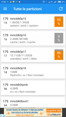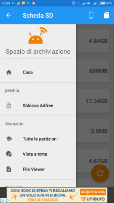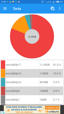 Le funzioni avanzate offrono la possibilità di visualizzare le partizioni montate e non, dei grafici a torta e un visualizzatore di file di configurazione del sistema per tracciare i file importanti come build.prop.