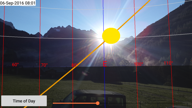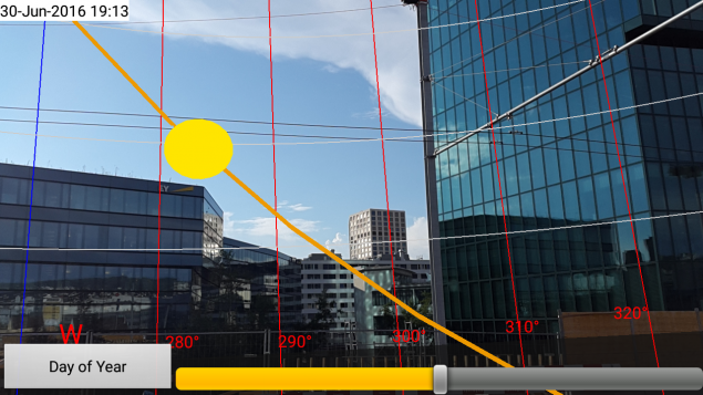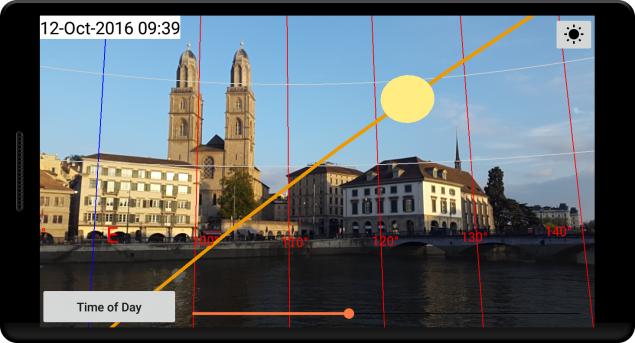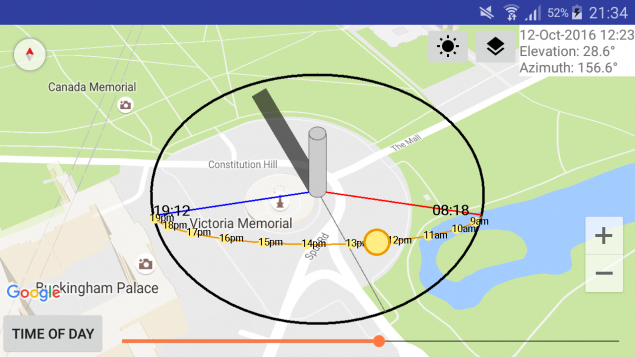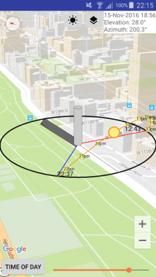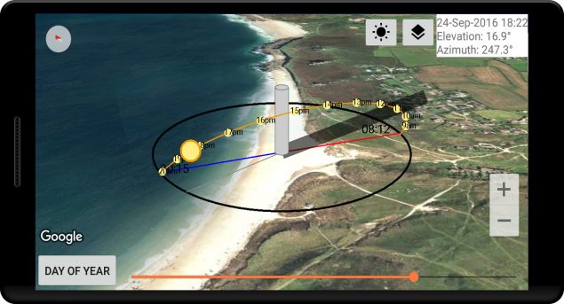L’app permette di tracciare il percorso di sole e luna in sovrimpressione alla scena che state inquadrando, oppure di visualizzare il tutto sulla mappa di Google con la proiezione dell’ombra, con la possibilità di variare in tempo reale l’ora e il giorno di riferimento.