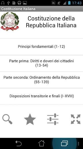 Ci troviamo dinanzi ad un titolo, chiamato proprio “Costituzione Italiana”, che vi permette di avere sempre a portata di tap tutti gli articoli dello Stato italiano, ma l’applicazione include delle interessanti caratteristiche che le consentono di emergere.