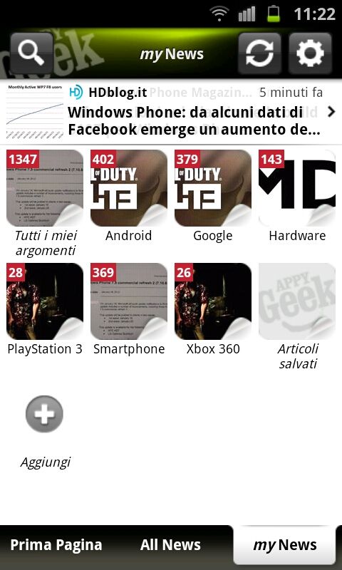 Infine, nella schermata Prima Pagina potrai trovare le informazioni selezionate appositamente dal team di APPY Geek. Sia in questa sezione che nella precedente, avrete anche la possibilità di ottenere maggiori news su uno specifico argomento, basterà selezionare il bottone in alto a destra per approdare in una particolare schermata contenente dei tag. Cliccando su un argomento potrete visualizzare maggiori informazioni in merito. La visualizzazione di queste parole può essere modificata tramite il piccolo ingranaggio posto in alto a destra.