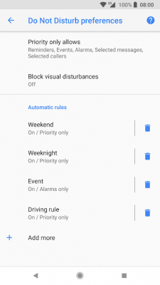 Tramite la schermata delle preferenze è possibile impostare delle esclusioni e delle regole per attivare automaticamente la modalità non disturbare ad esempio nel weekend, di notte, in determinata fasce orarie oppure in corrispondenza di eventi specifici.