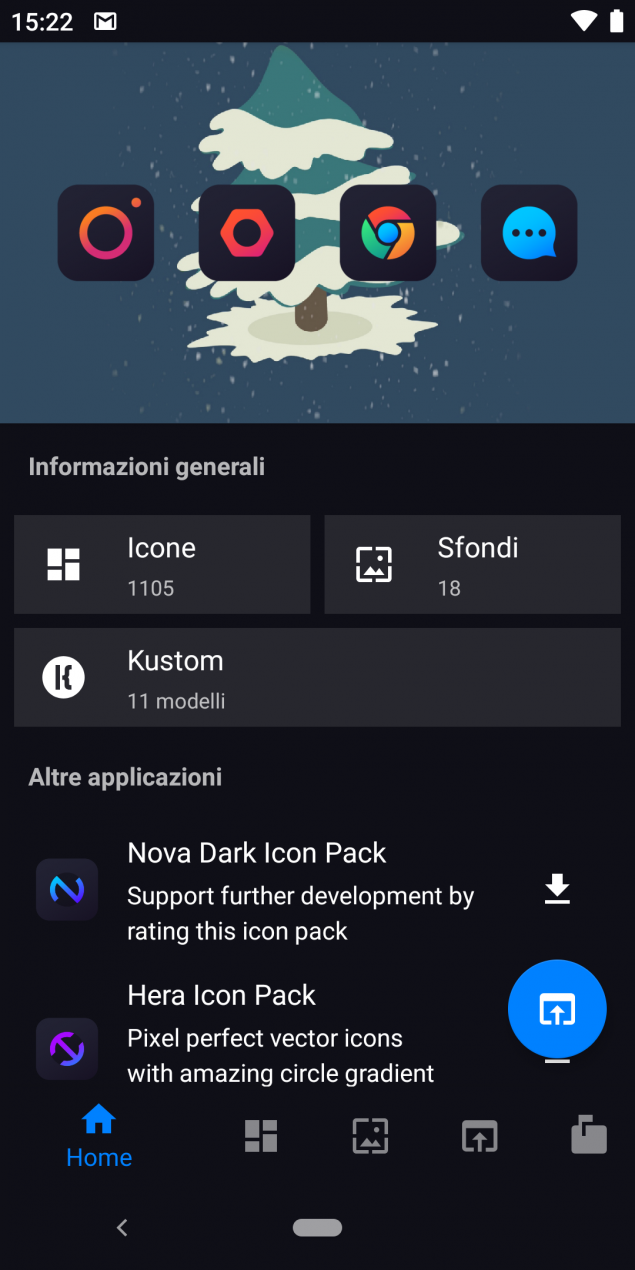L’icon pack include oltre 1.100 icone vettoriali che comprendono anche quelle per il calendario dinamico, ma lo sviluppatore punta ad arrivare a 3000 icone, inoltre è possibile trovare icone alternative e 11 modelli Kustom.