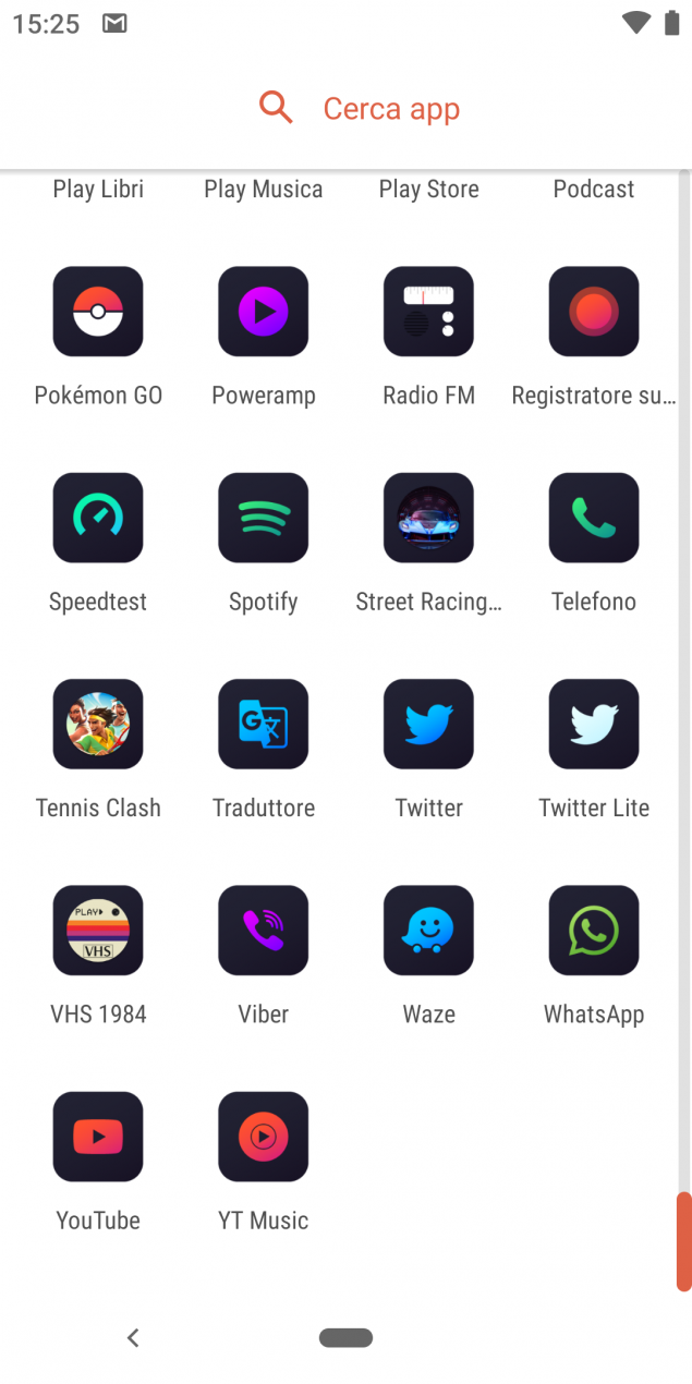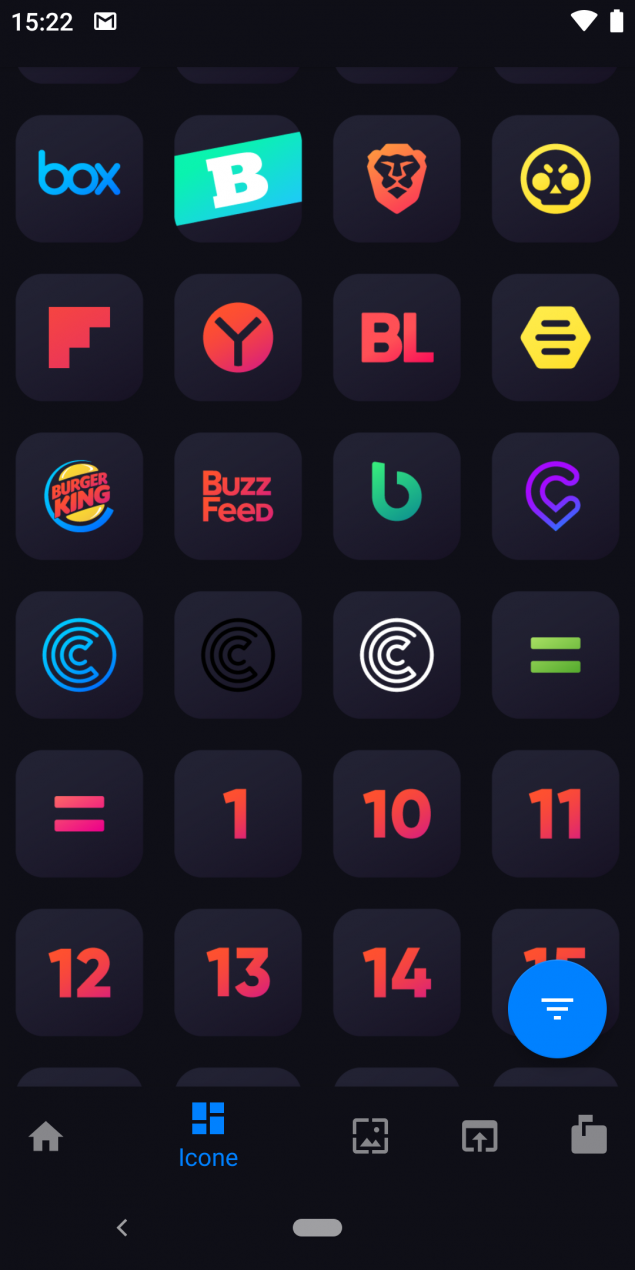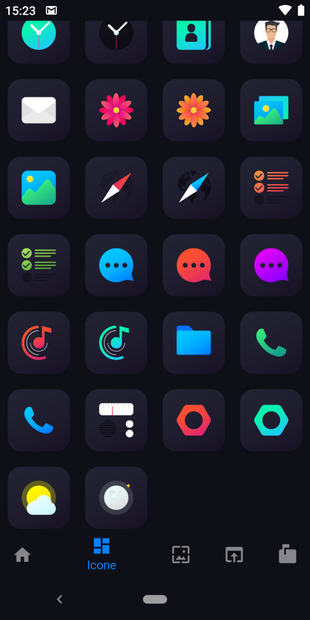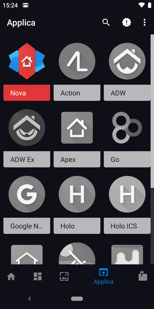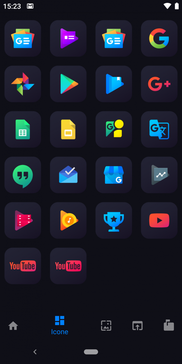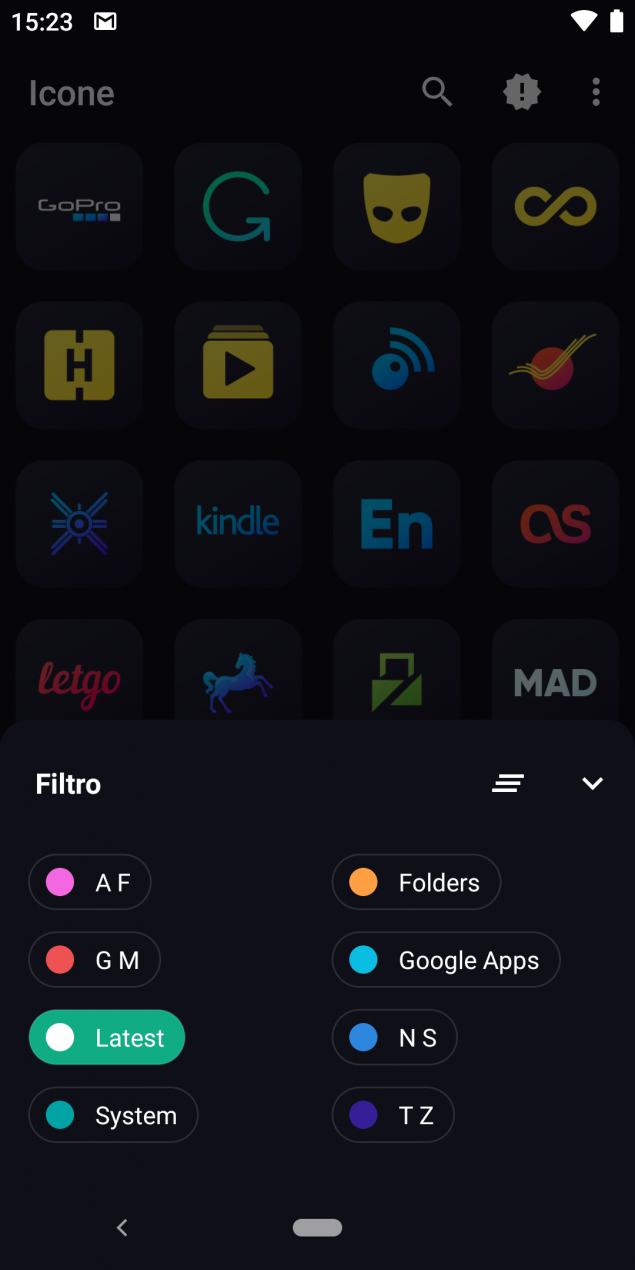 E’ possibile filtrare le icone per sezioni, sistema, app Google e per nome tramite lo strumento per la ricerca testuale integrato, inoltre l’applicazione mette a disposizione anche 18 sfondi che si adattano perfettamente allo stile delle icone.