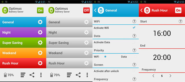 Optimus Battery Saver ha ben 5 modalità di risparmio ed in ognuna di queste si può impostare la propria routine per ottimizzare il consumo e l’utilizzo del dispositivo, vediamole: