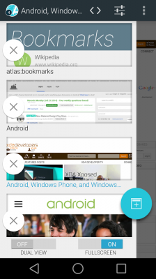 Mette a disposizione poi diverse funzioni ed opzioni, fra cui due pannelli accessibili tramite swipe, uno per raccogliere tutte le varie schede aperte con la possibilità di chiuderle e di aprirne di altre e l’altro per mettere a disposizione tante opzioni per personalizzare la navigazione. Fra le varie funzioni non possiamo non segnalare la modalità “dual view”, che permette di visualizzare due schede simultaneamente, ma ne troviamo tante altre.