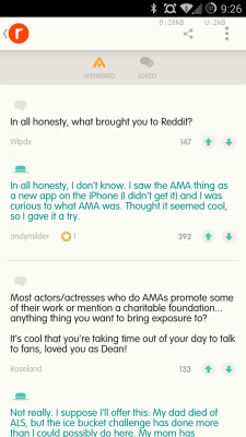 Reddit Ask Me Anything, è questo il nome dell’app. Le sue funzionalità si limitano alle conversazioni cosiddette AMA, ovvero quei thread in cui agli utenti viene data la possibilità di domandare qualsiasi cosa, per alcune ore, ad un personaggio specifico (alcuni giorni fa è stato il turno di OnePlus, ad esempio). Informare l’utente quando si svolge un AMA, inviare una notifica quando un AMA entra nei trend, fare domande, votare le domande, ricercare tra le domande già poste etc.: sono queste le features principali del software.