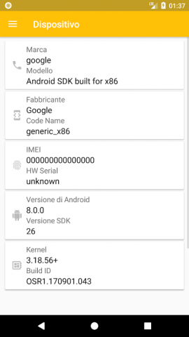 Nella sezione riguardante la rete l’app mostra lo stato della modalità aereo, roaming, tipo di rete, nome e codice dell’operatore e il paese, mentre nella schermata relativa al dispositivo lo strumento visualizza marca e modello, produttore, IMEI, versione Android, SDK e Kernel. L’app visualizza anche i contatti e gli SMS e supporta i dispositivi Dual SIM.