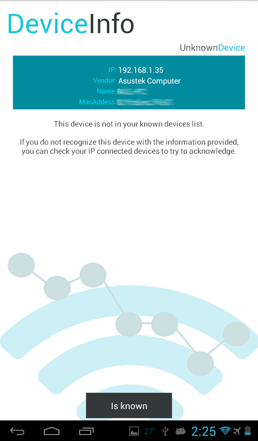 Ne fornisce l’indirizzo IP, il produttore, il Mac Address e il nome in modo veloce e comodo, cosicché possiate sempre conoscere i dispositivi connessi, in modo tale da impedire a terzi di sfruttare la vostra connessione abusivamente. Molto importante è la funzione che vi permette di salvare i dispositivi conosciuti, così da identificare immediatamente gli intrusi ed eventualmente buttarli fuori.