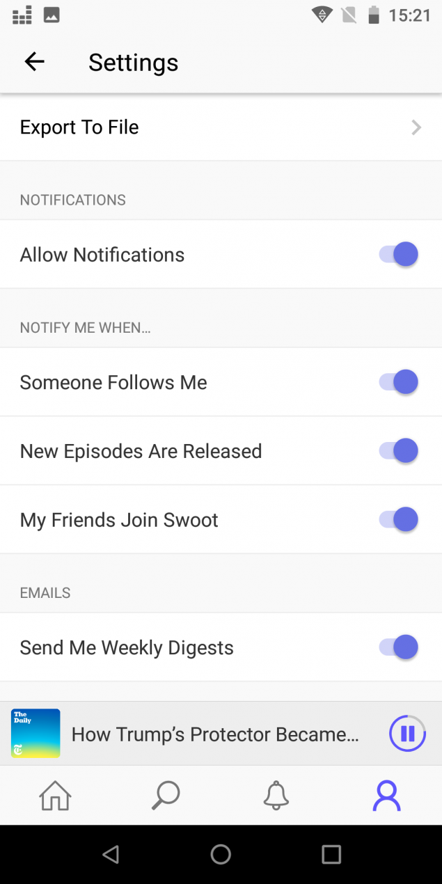 Swoot è un’applicazione ideata per favorire la scoperta di nuovi spettacoli ed episodi tramite le condivisioni tra amici per supportare la diffusione dei podcast dei piccoli produttori.