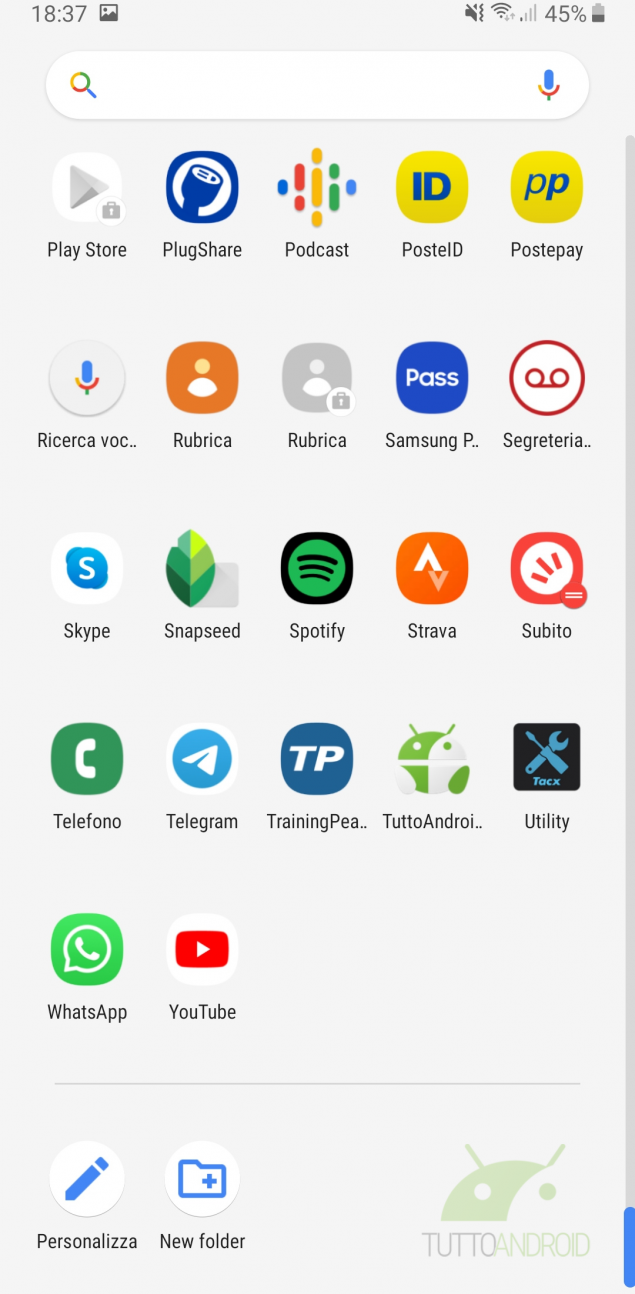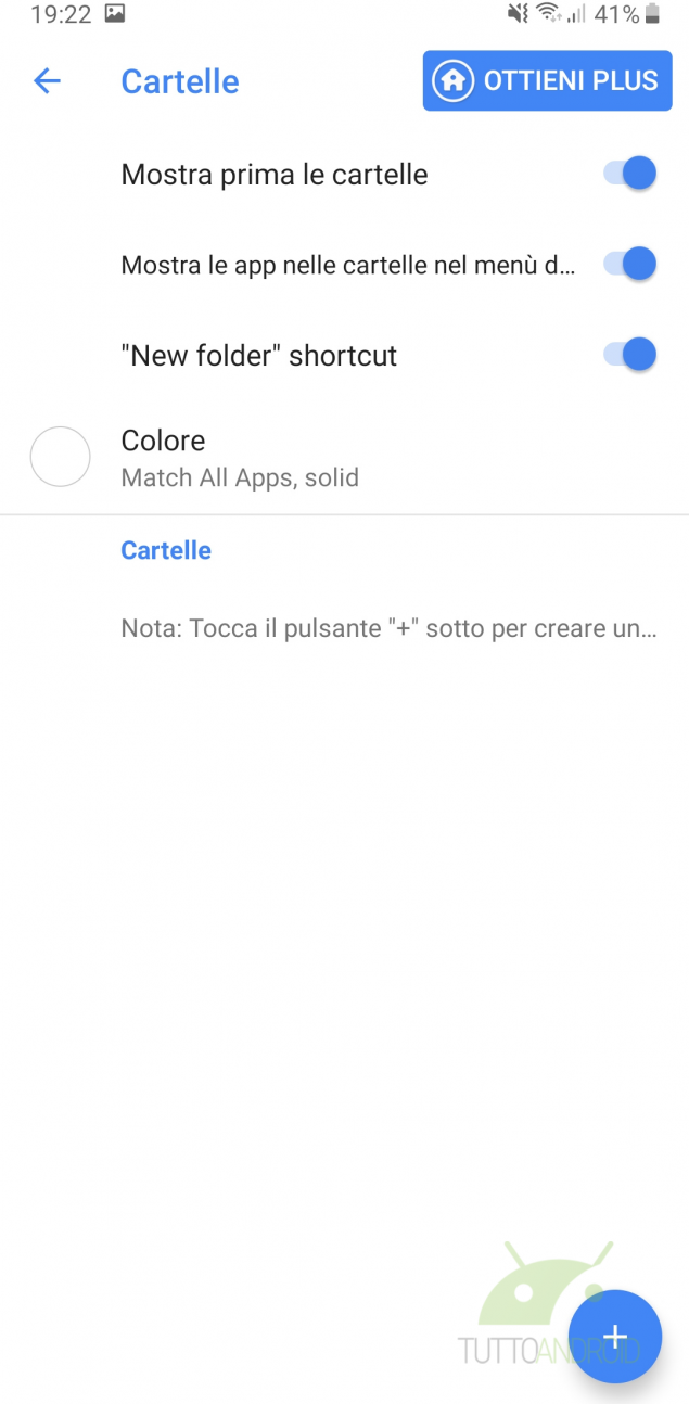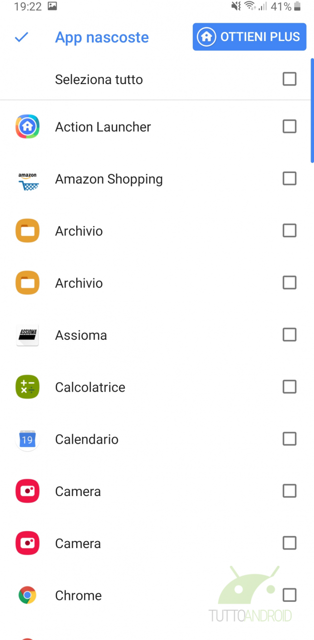 L’altra base da gestire riguarda poi il menù delle applicazioni. Qui ci si può sbizzarrire, specie con Action Launcher Plus grazie a chicche come le cartelle nell’app drawer, una funzione per selezionare le applicazioni da nascondere, e altre cosucce come scegliere la griglia di visualizzazione, le etichette e via dicendo.