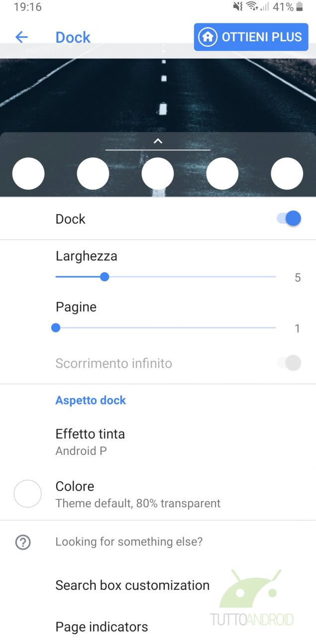 Una volta scaricato, e una volta saltata la carrellata di funzioni che Action Launcher vi mette subito in vetrina, vi ritrovate già con l’interfaccia di base, evidentemente e dichiaratamente ispirata al Pixel Launcher di casa Mountain View. A parte la preview, le prime cose da guardare sono le impostazioni Desktop, cioè quelle relative alla schermata principale. Qui Action Launcher consente di personalizzare la griglia, la grandezza delle icone, l’effetto di scorrimento del passaggio da una schermata all’altra e via dicendo. E per quanto riguarda la dock, l’utente può gestirsela come preferisce grazie a un ventaglio di impostazioni che consentono di personalizzare l’elemento separatore con ombreggiature, margini e così via, o ritoccare ovviamente la stessa dock modificandone i colori, le pagine, la larghezza ed effetti vari.
