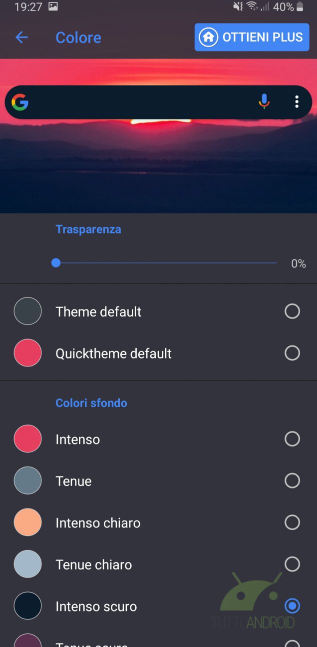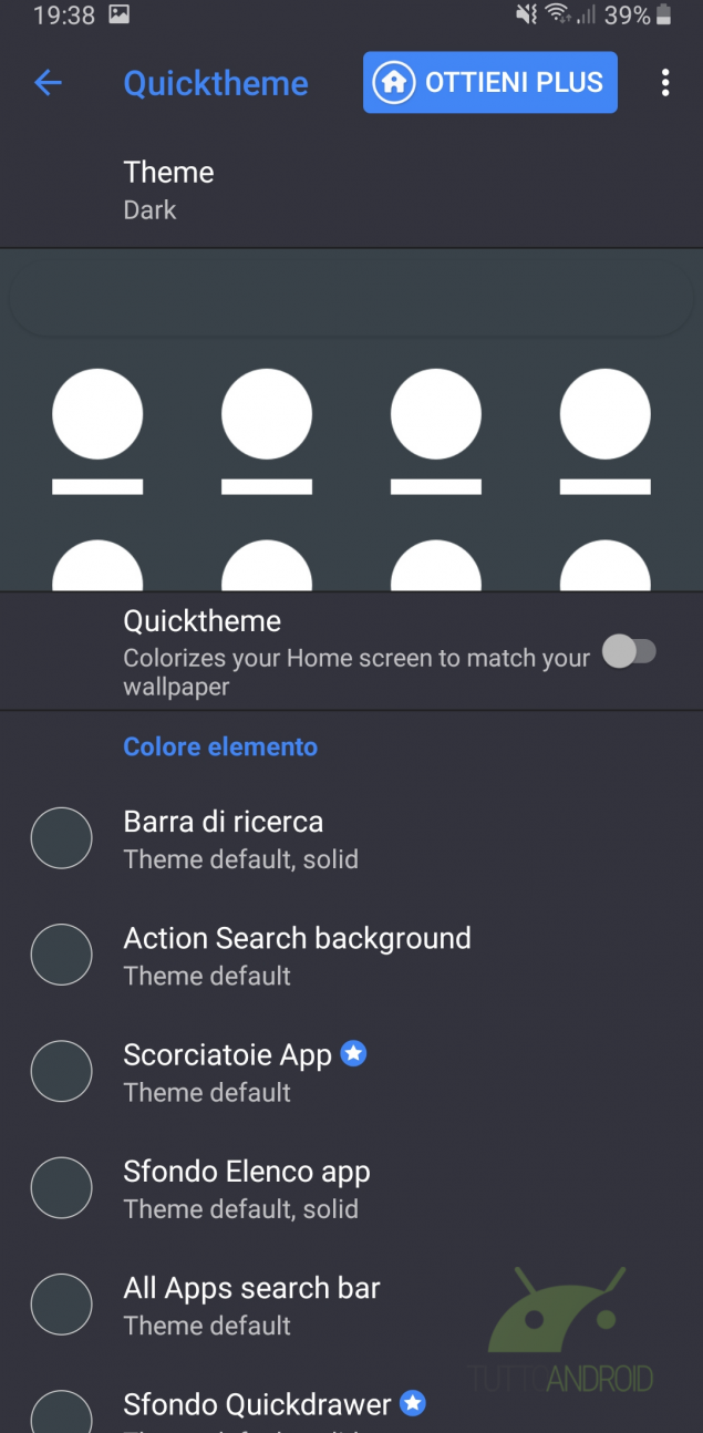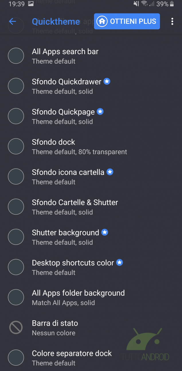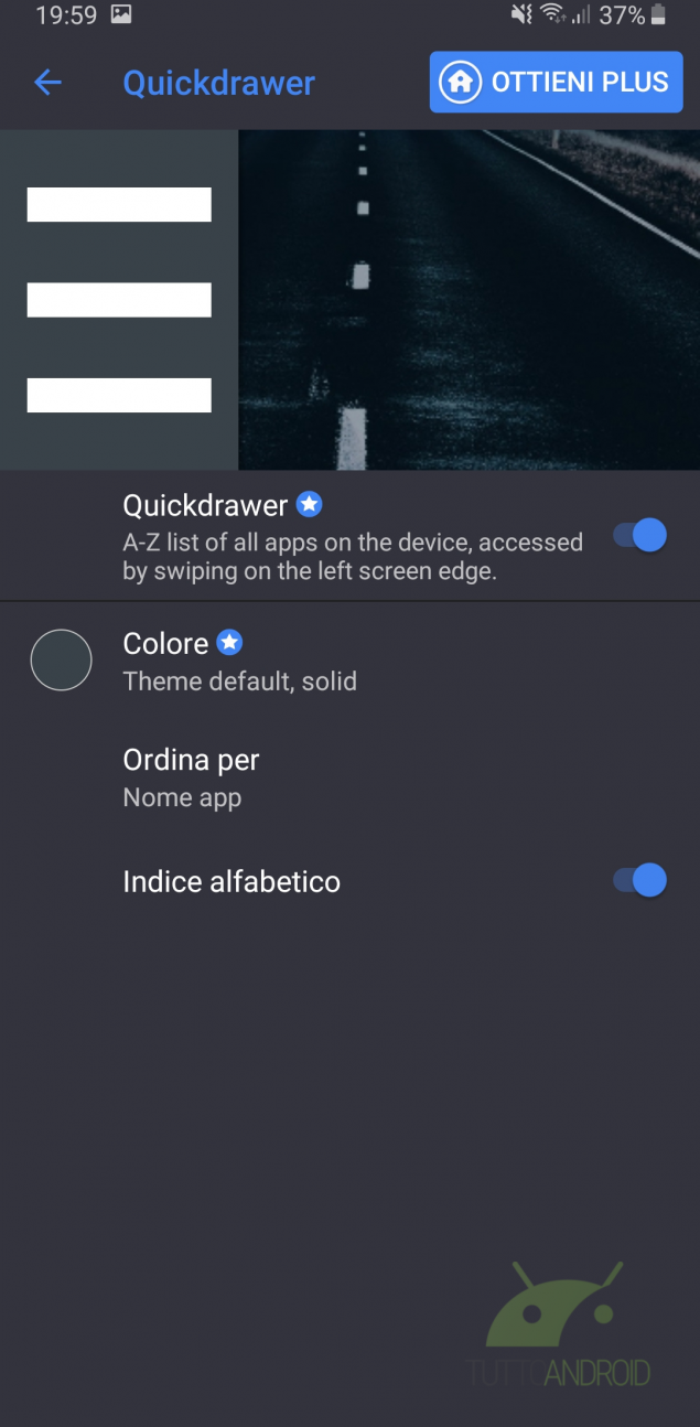 Quicktheme, come dice il nome stesso, è una funzione Plus che consente di andare a modificare in una sola volta i colori e la trasparenza di tutti gli elementi principali dell’interfaccia per adattarli al meglio allo sfondo scelto. Per quanto riguarda Quickdrawer, invece, parliamo di una sorta di menù rapido accessibile come scorciatoia che dà la possibilità di accedere a un elenco in ordine alfabetico o meno di tutte le app presenti sullo smartphone, accessibile dalla schermata principale con uno swipe dal bordo destro ad esempio.
