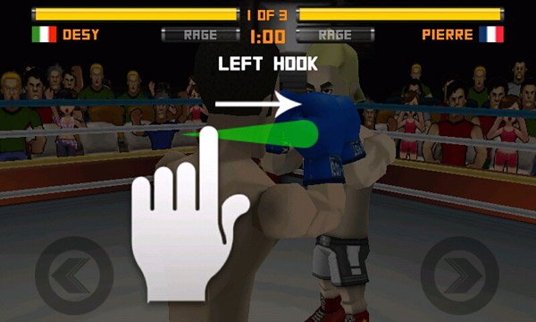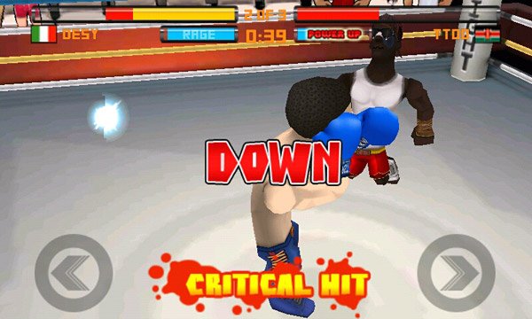 Ogni incontro durerà un tot di secondi e al termine di quest’ultimo inizierà un nuovo round, ma il vostro scopo è quello di buttare l’avversario a terra e vincere mediante un KO! Per farlo dovrete colpirlo fin quando la barra della sua energia non si svuota. Se, invece, finirete voi al tappeto ci sarà bisogno di premere sullo schermo per rialzarsi il prima possibile.