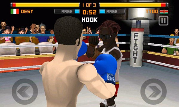 I controlli sono molto intuitivi e davvero facili da utilizzare. L’interfaccia include solo due bottoni che rappresentano la possibilità di abbassarvi verso sinistra e destra in modo da evitare i colpi degli avversari. Non mancherà la possibilità di effettuare dei jab diretti tappando sullo schermo oppure dei ganci laterali effettuando degli swipe sul display. Per difendervi avrete la possibilità anche di proteggervi con i pugni.