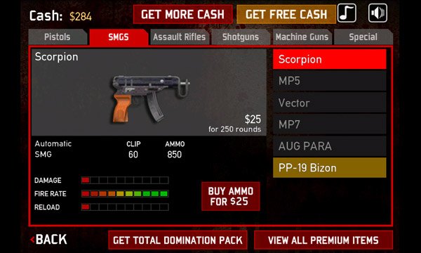 Con i dollari virtuali, guadagnati durante le missioni, potrete rifornire il vostro equipaggiamento. Dalla sezione “Store“, saranno disponibili ogni sorta di arma: pistole (Glock 17, Ruger p97, etc), SMGS (Scorpion MP5, MP7, etc), fucili d’assalto ( AK-47, M16, ARX160, etc), fucili da caccia (SPAS-12, AA-12, etc), mitragliatrici ( RPD, SAW, M240, etc) e speciali (RPG-7, M2 Flamethrower, etc). Queste armi, che in totale saranno 37, potranno essere comprate dopo essere state sbloccate. Volendo potrete anche decidere di acquistare (con soldi reali) l’intero pacchetto di armi.