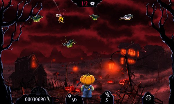 Per riuscirci vi basterà direzionare l’arma della super zucca e con uno swipe potrete scoccare la freccia che, se diretta nel modo giusto, andrà a trafiggere gli uccelli zombie! L’operazione non sarà per nulla semplice, difatti, gli essere malefici voleranno velocemente e avranno dimensioni diverse. Alcuni mostri saranno davvero piccoli e, quindi, difficili da colpire e abbattere.