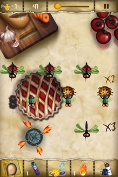 Nello stage, difatti, troverete una fascia inferiore in cui potrete inserire tutti gli strumenti acquistati. Con un semplice tap, avrete la possibilità di scegliere quale arma usare. Nella zona superiore, invece, potrete dare un occhio al numero degli insetti evasi, il totale dei morti e, inoltre, sarà presente una striscia che vi aiuterà a capire quando l’invasione sta per terminare.