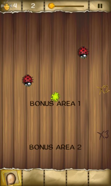 Le bestiole spunteranno non solo dall’alto dello schermo, ma con il procedere delle missioni usciranno da ogni lato. Inoltre, negli stage ci saranno delle zone bonus che vi consentiranno di guadagnare maggiori punti se schiaccerete gli insetti in tali spazi. Queste fasce saranno situate quasi alla fine dello stage e, dunque, gli insetti dovranno essere uccisi proprio poco prima che riescano ad evadere.