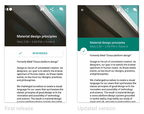 Per facilitare ulteriormente il compito agli sviluppatori, Big G ha successivamente rilasciato il codice sorgente dell’app Google I/O 2014, anch’essa realizzata utilizzando il Material Design, in modo da fornire un chiaro esempio di utilizzo pratico delle nuove linee guida.