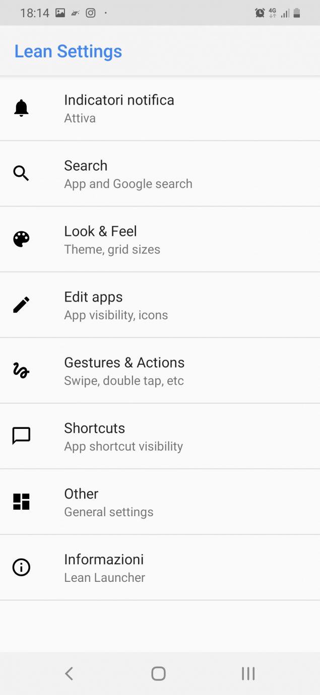 - La modifica del launcher è molto importante, si tratta infatti dell’app che utilizziamo di più durante la giornata, se possiamo sceglierne una leggera ne guadagneremo in termini di performance e autonomia, la nostra scelta è caduta su “Lean Launcher“. Gratuito e open source è uno dei launcher che meglio si adattano agli smartphone non particolarmente potenti.
