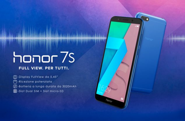 Presentato per il Pakistan tre settimane fa, annunciato in Europa da neanche dieci giorni, Honor 7S arriva ora in Italia. Lo annuncia la pagina Facebook Honor Italia comunicando la disponibilità del prodotto nelle principali catene e negozi nostrani.