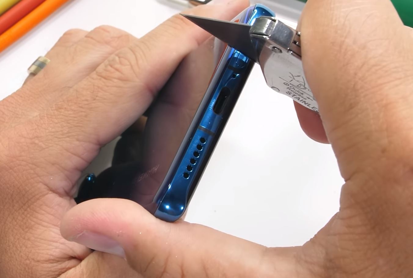 Huawei P40 Pro supera a pieni voti anche il classico test di piegamento, dove il frame in alluminio resiste senza esitazioni e non mostra alcun tipo di danno, anche centralmente dov’è presente una delle antenne direttamente integrate nel metallo.