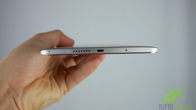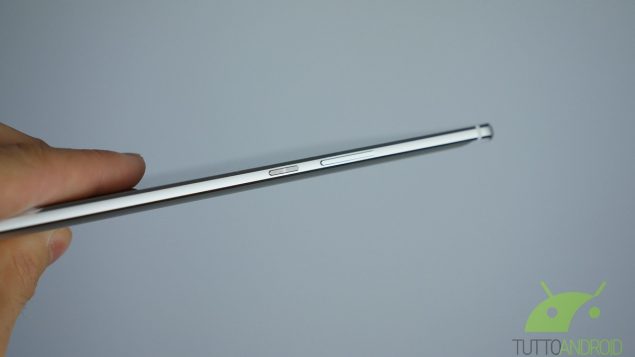 215.5 x 124.2 x 7.3 mm queste sono le dimensioni. Troppo importanti? Beh se pensate di utilizzarlo come unico strumento che accorpa tablet e smartphone allora sì, capiterà di non sapere dove metterlo, dove appoggiarlo o come infilarlo in tasca.