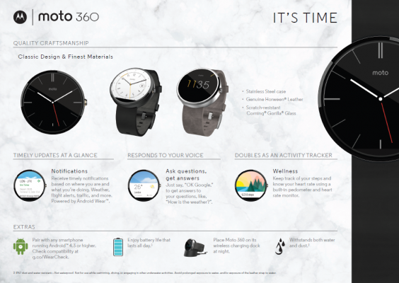 Il Motorola Moto 360 è stato ufficialmente presentato alcuni giorni fa ma non è ancora disponibile all’acquisto nel nostro paese. Al momento possiamo apprezzare il nuovo gioiellino di Motorola solo attraverso le immagini e i video provenienti da oltreoceano e, a questo proposito, abbiamo pensato di proporvi una infografica ufficiale nella quale vengono elencati i componenti e le caratteristiche del Moto 360.